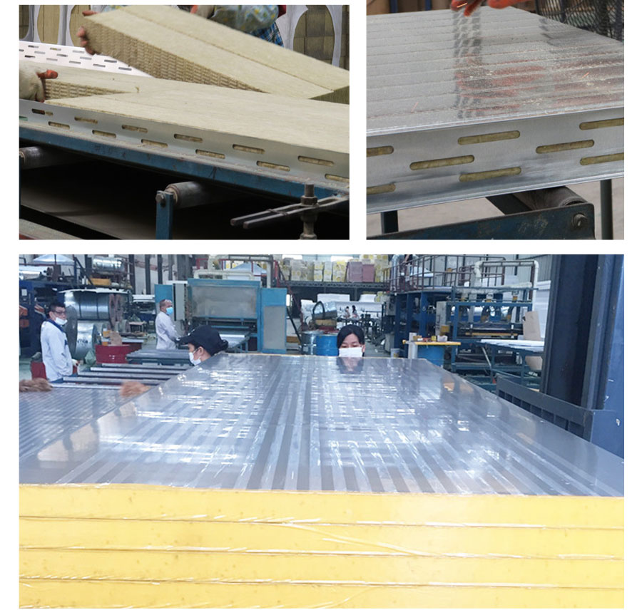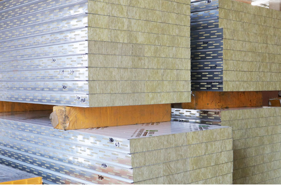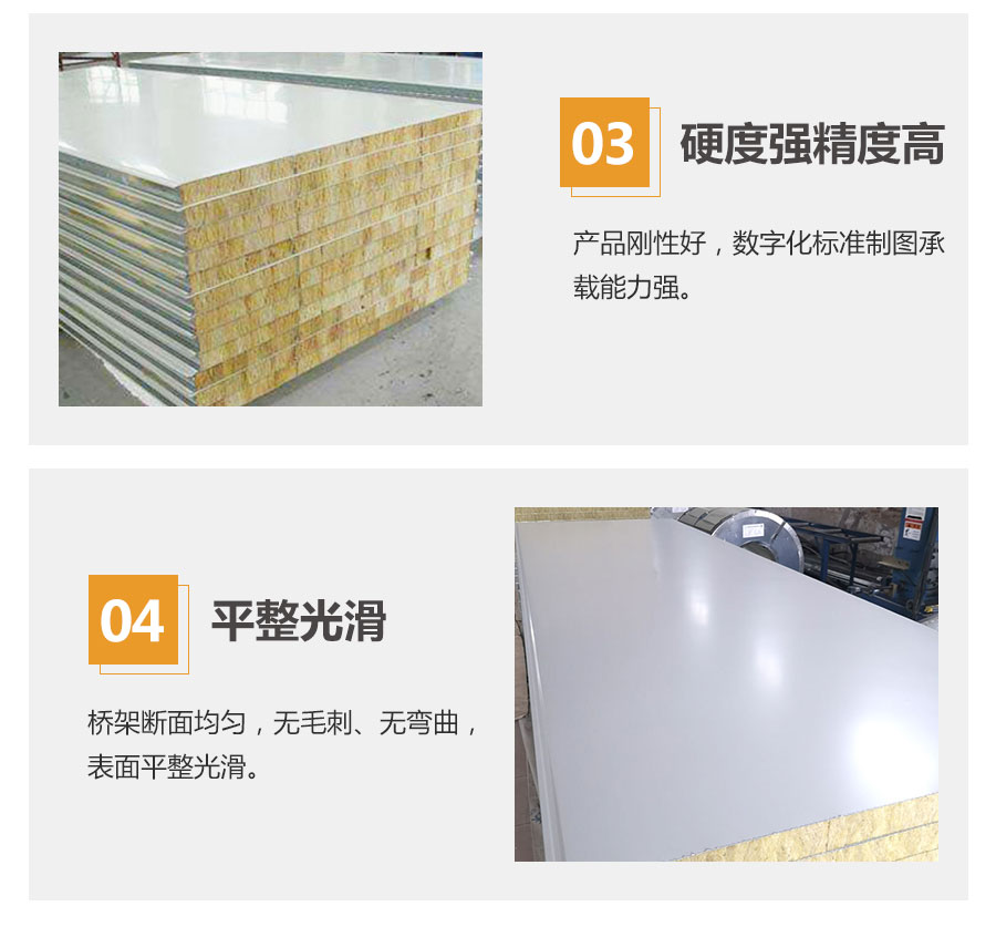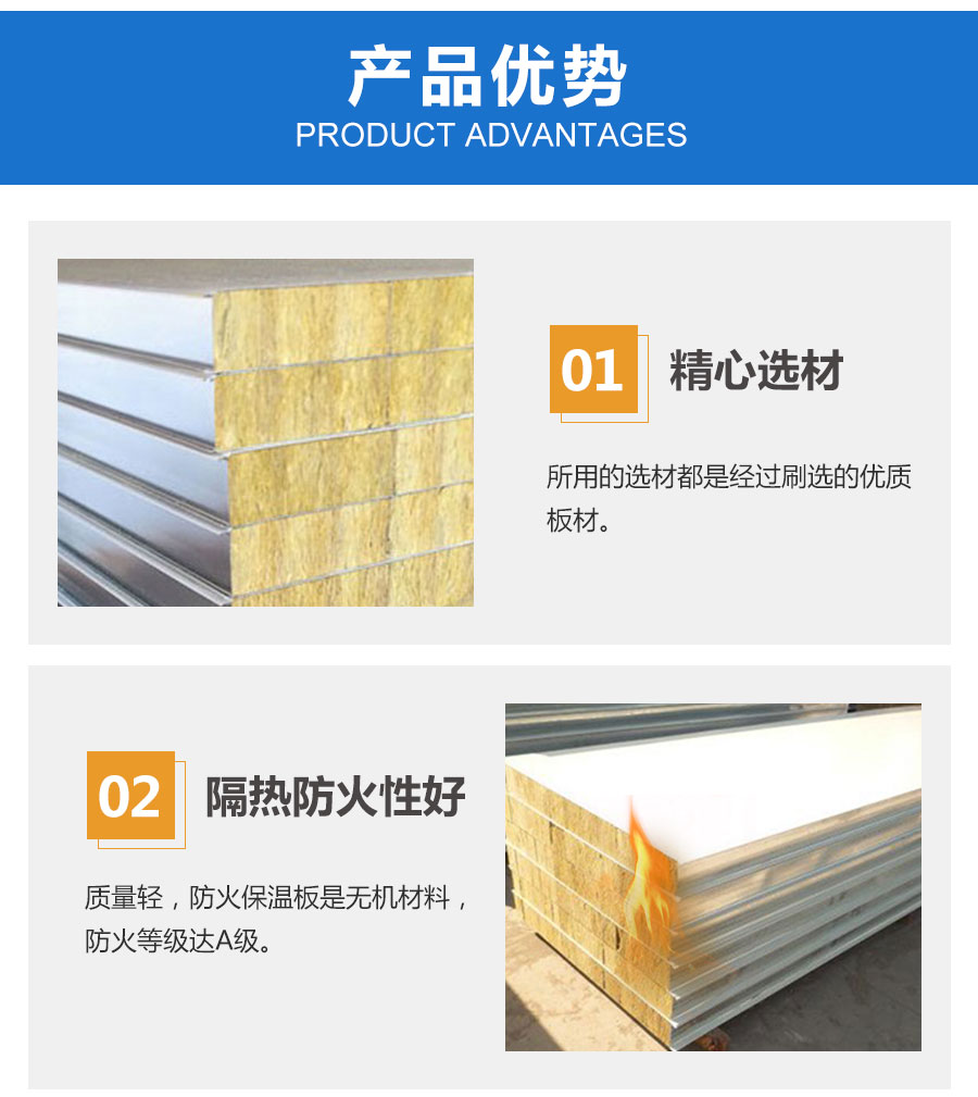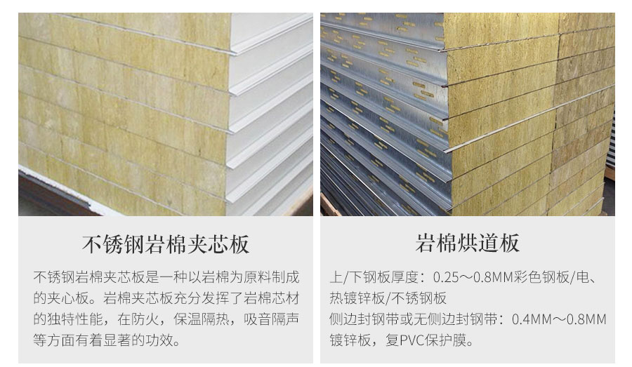 巖棉彩鋼夾芯板其芯材是以玄武巖及其它天然礦石等為主要原料,經(jīng)高溫熔融成纖維,加入適量粘結(jié)劑,固化加工而制成的。是同類(lèi)(夾芯板系列)中耐火性能最強(qiáng)的一種新型防火板材。